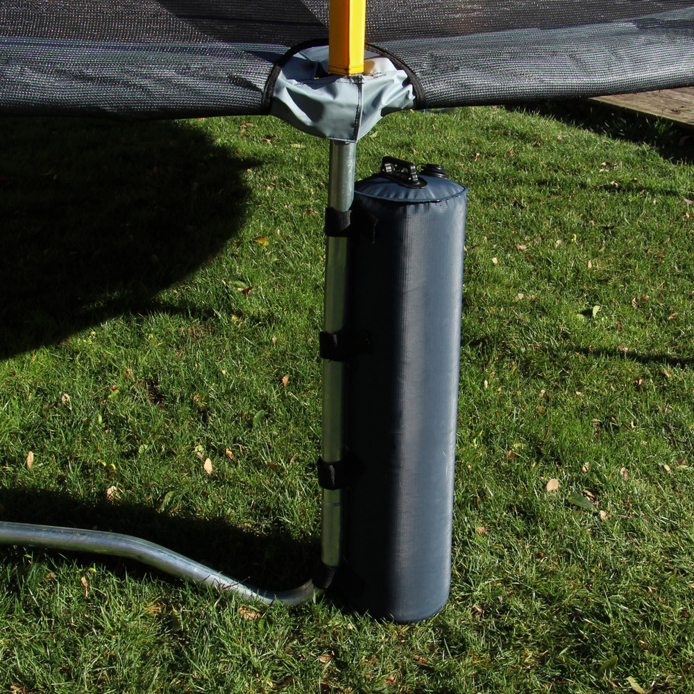 Pack di 4 sacchi di contrappeso in PVC. Questo pacchetto è compatibile con tappeti elastici di 4 piedi o gazebi da giardino. Capacità di 14 litri. Da fissare in orizzontale o in verticale.