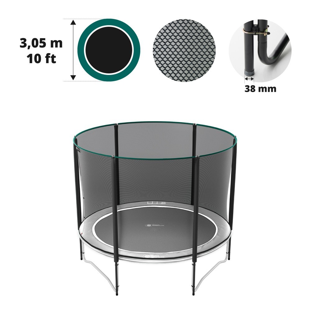 - Compatibilità garantita con tutte le marche di trampolini elastici rotondi da 3,06 m di diametro (complessivi). Questa rete di protezione prevede 4 piedi e fa parte dell’equipaggiamento del nostro Boost'Up 300.
