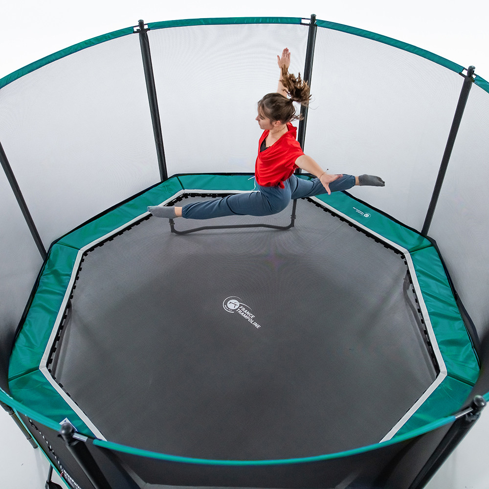 I tappeti elastici Octopulse sono dotati di una rete di qualità premium con i pali che scendono fino a terra, garantendo una protezione completa durante l'uso.