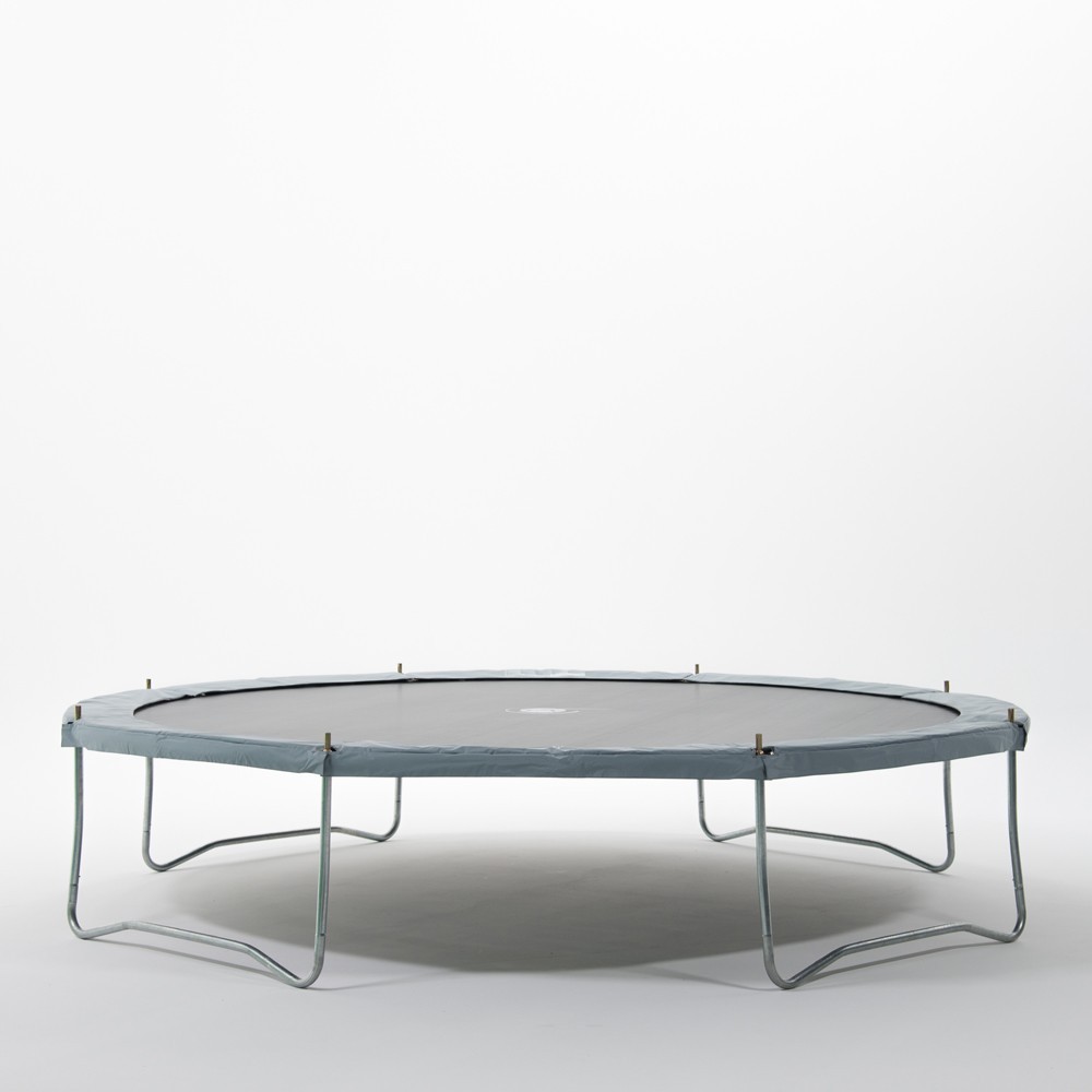 -    Il cuscino di protezione composto da spugna di alta densità e rivestito di tessuto PVC grigio copre totalmente le molle per proteggere bene i saltatori nel caso di eventuali cadute su di esse.