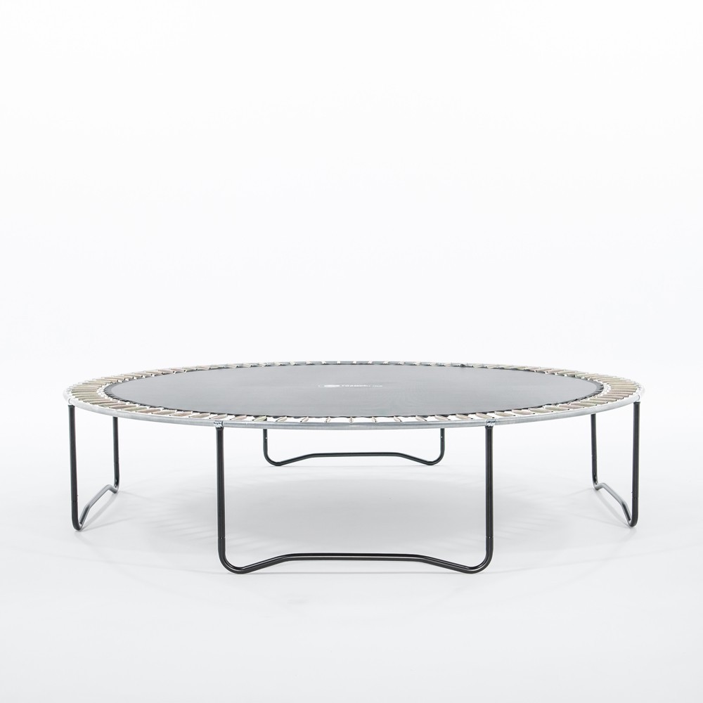 - Il trampolino elastico è costituito da un telaio con tubi da 42 mm di diametro e 2 mm di spessore dell’acciaio. Avrete così a disposizione una struttura stabile, che non si muoverà durante l’utilizzo. Le parti in acciaio vengono sottoposte a un processo di galvanizzazione a caldo, affinché possiate tenere il tappeto elastico nel vostro giardino anche tutto l’anno.