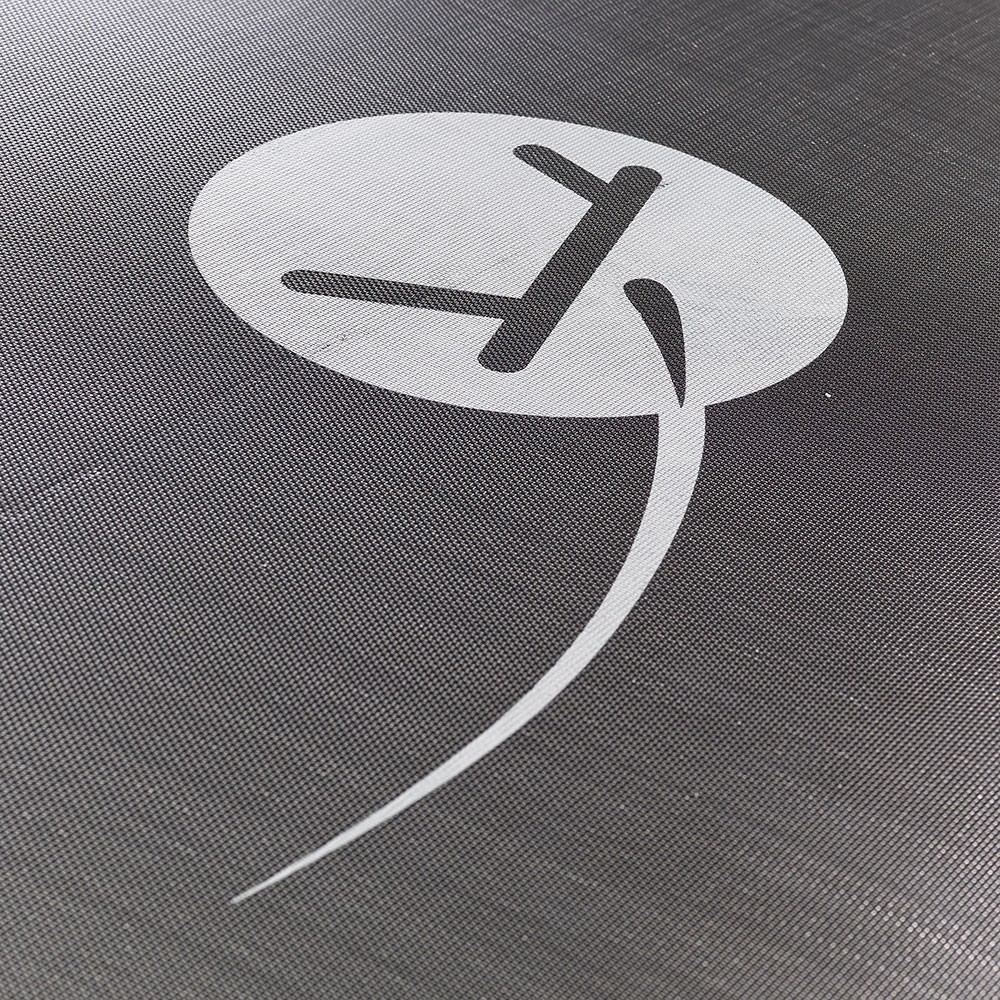 - Il telo da salto è fabbricato in Polipropilene “mesh” Permatron, un tessuto estremamente resistente sia allo strappo che al cedimento in termini di tensione. Le regole di sicurezza si trovano sull’etichetta del telo da salto e in diverse lingue. Il telo è trattato contro i raggi UV.